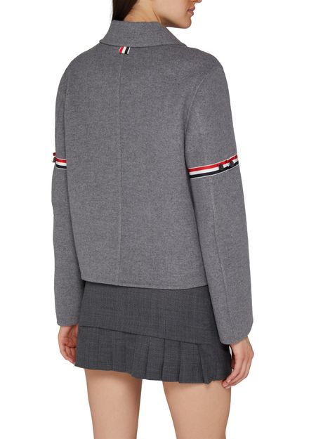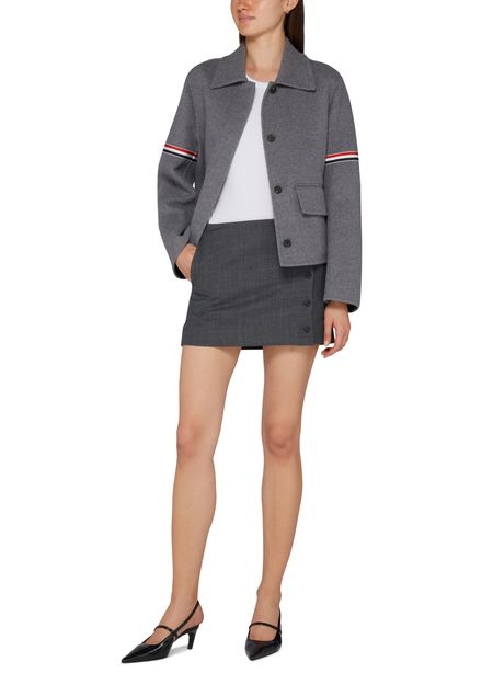 La veste en laine Thom Browne allie élégance et décontraction. Sa fermeture dissimulée et ses boutons sur le devant soulignent un style raffiné. Avec sa coupe courte et ses poches à rabat, elle offre une silhouette moderne. Les manches longues ajoutent une touche de sophistication à cette pièce casual incontournable.