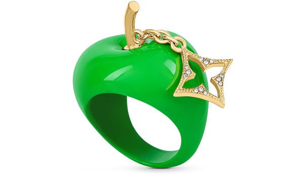 Cette bague LV Fruits prend la forme d'une pomme avec une finition en émail coloré et une tige en métal poli. Elle se pare d'un charm fleur de Monogram agrémenté de cristaux étincelants sertis à la main. Fidèle au nouveau thème Fruits de la saison, ce bijou s'accorde à la perfection à de nombreuses pièces de la collection de maroquinerie.