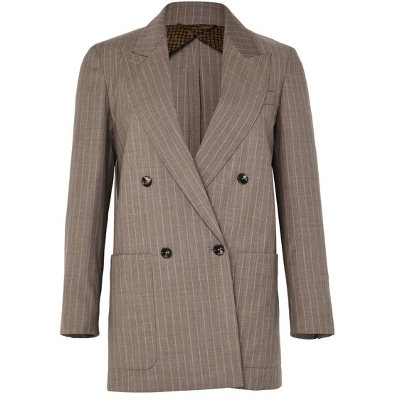 Découvrez le blazer à double boutonnage Max Mara, une pièce élégante au style classique. Son double boutonnage, son col raffiné et ses poches plaquées s’associent à des manches longues et un imprimé rayé pour une allure sophistiquée, parfaite du matin au soir.