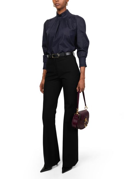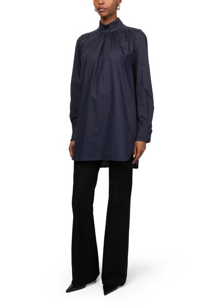 Découvrez la blouse à manches longues Gettata de Max Mara, une pièce d'élégance avec son encolure montante et ses manches à volants. La coupe ample et la fermeture bouton au dos offrent une silhouette sophistiquée, idéale pour toutes les occasions. Ce haut allie style et confort, ajoutant une touche polyvalente à votre garde-robe.