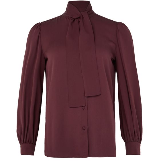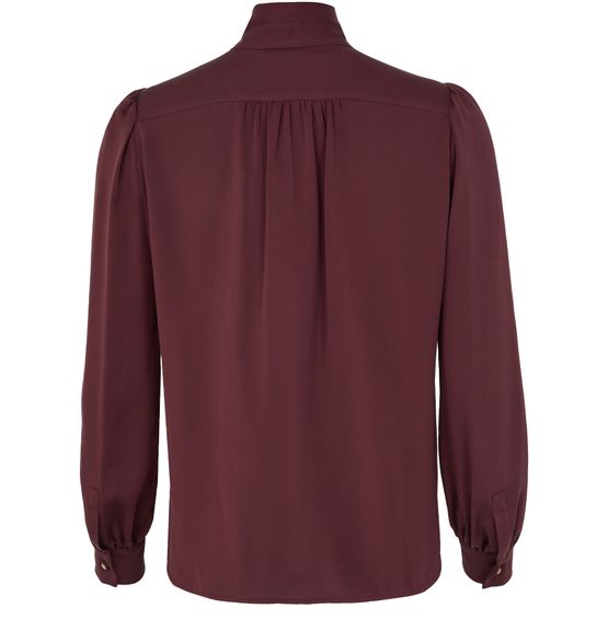 • Description : Coupe ample, long, encolure montante, col lavalière/cravate, bouffant, manches longues, fermeture à bouton.