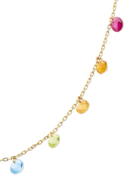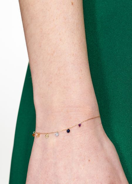 Ce bracelet Chakras révèle l'inspiration de la créatrice. La marque Persée dévoile un modèle hypnotisant avec une succession de pierres colorées délicates. Un bijou aux finitions très raffinées.