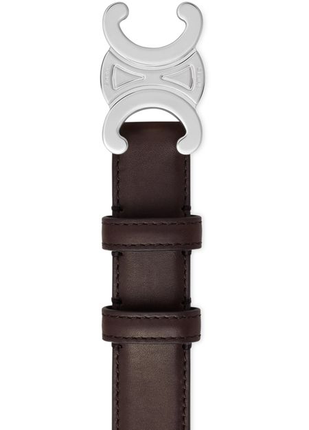 La ceinture Triomphe moyen modèle de Celine, en veau naturel, sublime votre silhouette. Portée aux hanches, elle s'ajuste parfaitement grâce à sa boucle Triomphe à bouton de col. Sa finition argent ajoute une touche d'élégance, faisant de cet accessoire un indispensable pour un style raffiné et contemporain.