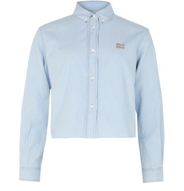 Découvrez la chemise Chambray de Miu Miu. Ce top élégant présente une coupe ample et un imprimé rayures, sublimé par un logo brodé. Les manches longues resserrées et la fermeture à bouton viennent parfaire ce modèle versatile.