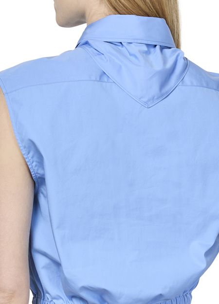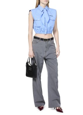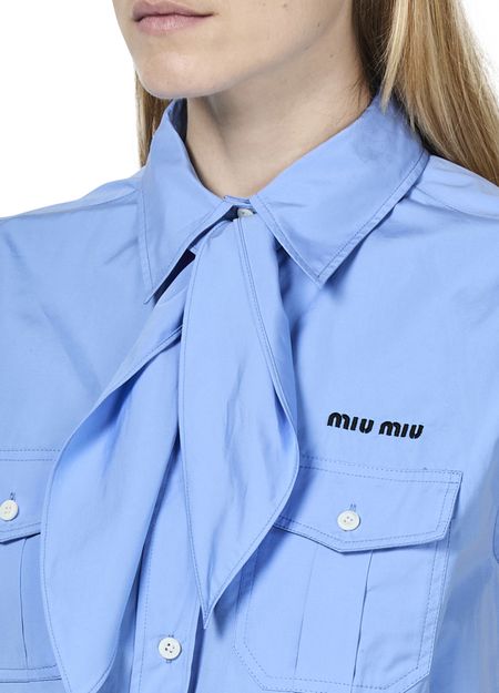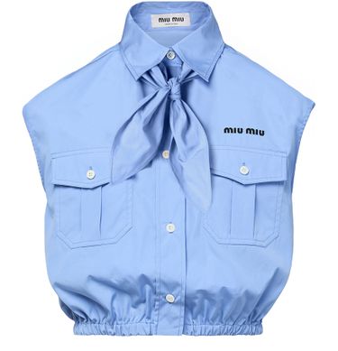 La chemise courte sans manche de Miu Miu incarne l'élégance classique. Dotée de boutons sur le devant et d'un logo brodé sur la poitrine, elle se distingue par ses poches à rabat et sa surpiqûre visible. Avec deux poches avant, ce modèle intemporel offre un style raffiné et décontracté.