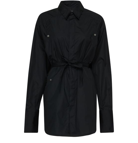 • Description : fermeture dissimulée, manches longues, étiquette avec logo à l’arrière, long, poche poitrine, chemises, col chemise, manches resserrées, taille ceinturée, surpiqûre visible.