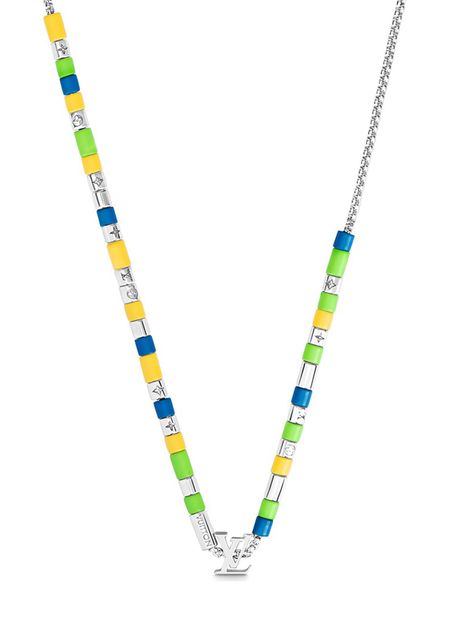 Ce nouveau collier LV Sunrise présente toutes les nouvelles teintes de la collection Printemps-Été 2022. Deux charms emblématiques confèrent à ce modèle une note d'éclat signée Louis Vuitton : l'un est entouré de perles à finition mate et l'autre se trouve à l'extrémité de la chaîne ajustable. Il peut se porter seul ou s'associer à d'autres pièces de la collection.