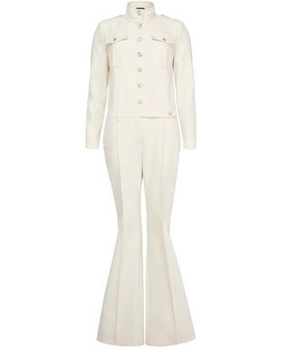 La combinaison safari en tricotine de coton extensible de Tom Ford allie élégance et praticité. Avec son encolure montante et ses manches longues, elle se distingue par des boutons sur le devant et une taille ceinturée. Les poches à rabat et la poche poitrine ajoutent une touche fonctionnelle à ce look raffiné.