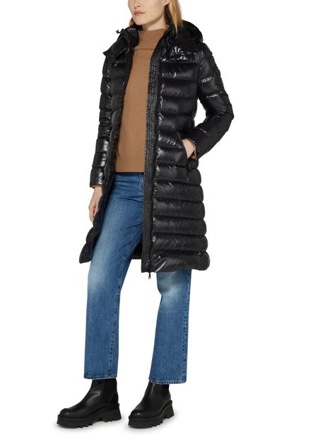 • Description : Manteau long, coupe évasée, capuche, col montant, manches longues, poches zippées, logo sur la manche, fermeture à glissière.