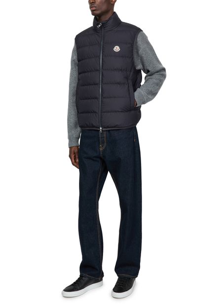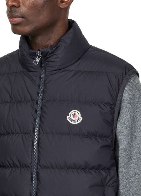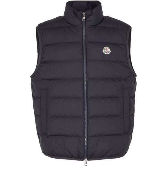 Découvrez Moncler's doudoune sans manches Contrin. Sa coupe regular et sa longueur courte offrent un style confortable, avec un col montant et une fermeture à glissière élégante. Doté de poches latérales et d'un logo triangulaire distinctif, ce blouson à texture capitonnée allie style et fonctionnalité.