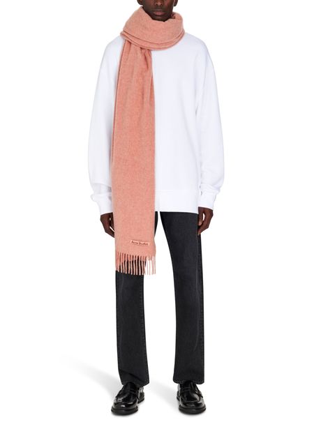 On reconnaît la signature d'Acne Studios face au design sobre mais moderne de la nouvelle écharpe Canada New. Cette pièce confortable aux coloris actuels s'achève sur des franges.