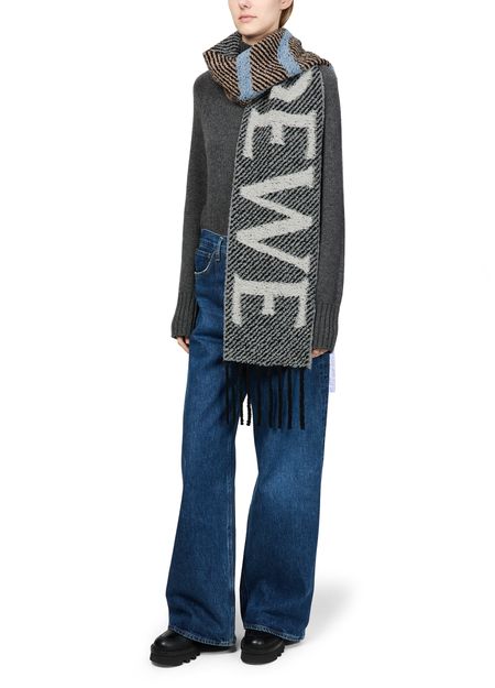 Découvrez l'écharpe Loewe en laine et alpaga, ornée d'un imprimé rayures saisissant. Les bords effrangés ajoutent une touche de style, tandis que l'imprimé logo le long de la bordure assure une finition signature. Idéale pour sublimer toute tenue avec son élégance moderne.