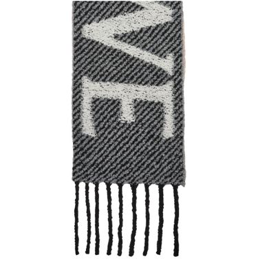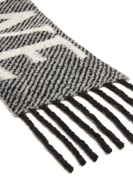 • Description : Imprimé logo le long de la bordure, logo imprimé, imprimé rayures, bords effrangés.