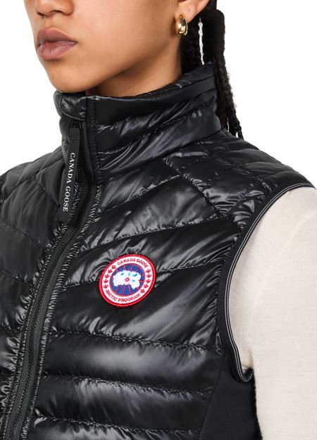 Découvrez la veste sans manches HyBridge® Lite de Canada. Cette veste courte matelassée, avec texture rembourrée, offre chaleur et silhouette moderne. Elle se distingue par sa fermeture éclair, son logo poitrine et son logo appliqué. Le col haut et la coupe ample accentuent son allure urbaine, alliant confort et style.