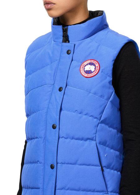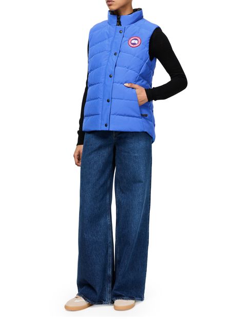 Le gilet sans manches Freestyle de Canada Goose se distingue par sa texture capitonnée et son col montant. Sa fermeture à glissière dissimulée et ses boutons-pression assurent un style épuré. Le logo sur la poitrine et à l'arrière évoque l'élégance, tandis que sa coupe courte apporte une touche contemporaine.