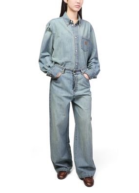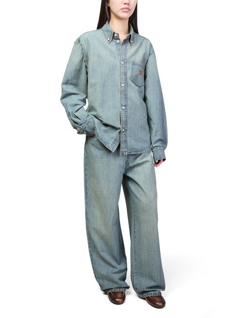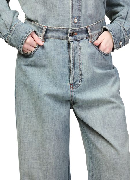 Découvrez le jean en chambray Miu Miu, confectionné en denim de qualité avec une longueur cheville contemporaine. Sa fermeture à glissière avec bouton, ses passants pour ceinture et sa surpiqûre visible offrent une allure raffinée. Les poches pratiques et le logo à l’arrière signent une pièce polyvalente et élégante.