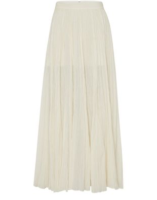 La jupe longue plissée effet froissé de Toteme offre une silhouette midi raffinée. Sa coupe trapèze flatte la silhouette, tandis que la fermeture à glissière au dos assure un ajustement parfait. L'étiquette avec logo à l’arrière souligne l'élégance discrète, faisant de cette pièce un incontournable pour toute garde-robe moderne.