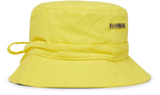 Le Bob Gadjo de Jacquemus est un chapeau à couronne ronde avec des coutures apparentes et une visière courte. Agrémenté d'une bride et d'une fermeture avec nœud, il est doté d'un logo métallique à l'avant et de finitions argentées. Le tour de tête est de 58 cm.