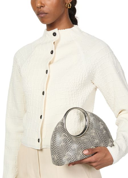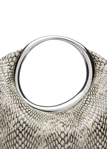 Le mini sac Jacquemus Le petit Calino se distingue par son motif python audacieux et son fermoir aimanté pratique. Avec un compartiment unique et des finitions argentées, il allie élégance et fonctionnalité. Les surpiqûres apparentes et la poignée unique ajoutent une touche artisanale, parfait pour un porté main chic et contemporain.