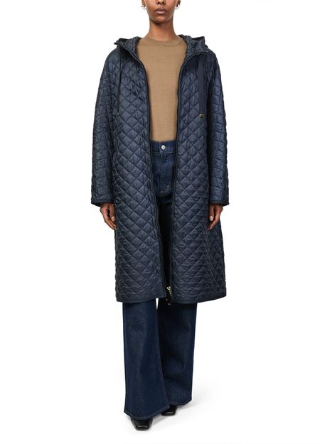 Découvrez le manteau matelassé à capuche de Max Mara, confectionné en cuir à chevron matelassé au motif à losanges. Sa coupe longueur genou sans col, ses manches longues et sa texture capitonnée s’associent à une fermeture à glissière et des poches latérales pour un style doudoune polyvalent et élégant.