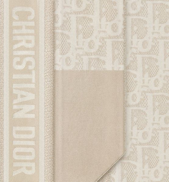 Description : Imprimé Dior Oblique Natte couleur noisette, signature Christian Dior, bande jacquard ton sur ton avec signature Christian Dior au dos, finitions en pointe.