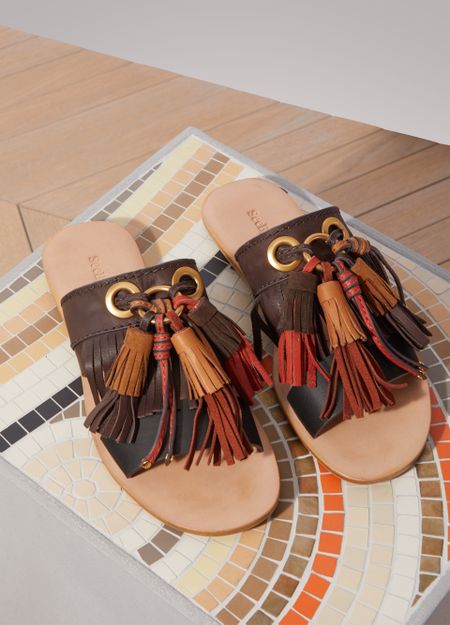 Mutine et féminine, la mule se réinvente avec le modèle Tania, dessiné par See by Chloé. La forme sobre et plate de ces mules est la base idéale pour que s’exprime l’extravagance raffinée des pampilles colorées, signature de la collection. À l’aise en ville comme en bord de mer, ces mules en cuir souple et lisse twistent un simple pantalon ample ou un short en...