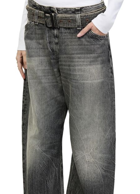 Découvrez le jean large ceinturé Acne Studios, confectionné en jean bleu délavé pour une allure moderne. Sa coupe bootcut, ses passants pour ceinture et son détail patch apportent élégance et confort. Deux poches avant et une poche arrière complètent ce modèle polyvalent et raffiné.