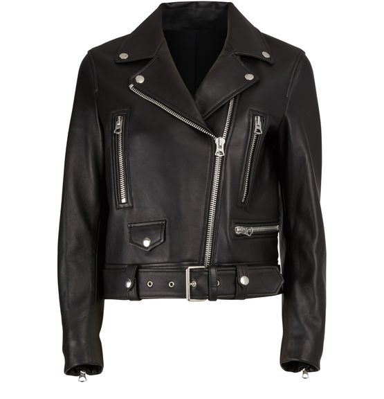 Le perfecto Mock en cuir est un modèle signé Acne Studio. Il présente des manches longues, une fermeture zippée devant côté gauche, deux poches poitrine latérales et deux autres petites poches. Il est agrémenté d’une ceinture réglable.
