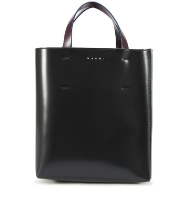 Avec le sac Museo, la maison italienne Marni propose un indispensable du vestiaire féminin. L'intensité du cuir lisse noir de ce grand cabas est rehaussé par la couleur bourgogne de ses anses.