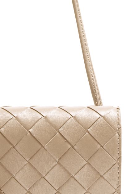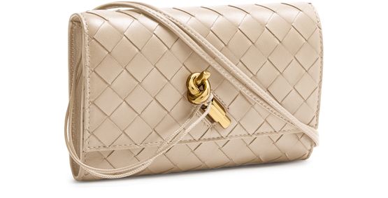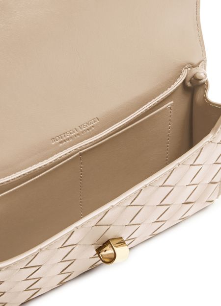Découvrez la pochette à bandoulière Andiamo de Bottega Veneta, sublimée par la technique de tressage Intrecciato et un fermoir doré raffiné. La bandoulière fine et le logo embossé apportent une allure contemporaine, tandis que la poche intérieure ouverte offre une organisation élégante.