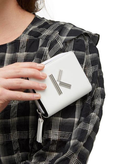 La marque parisienne Kenzo sait jouer avec son histoire et avec son logo pour proposer des pièces ludiques et tendance comme ce porte-monnaie K en cuir. Les lignes contemporaines et épurées sont signées de la lettre K, composée de trois segments parallèles. Minimaliste et sobre, ce modèle n’en reste pas moins reconnaissable au premier coup d’œil et évoque la double culture franco-japonaise de la maison.
