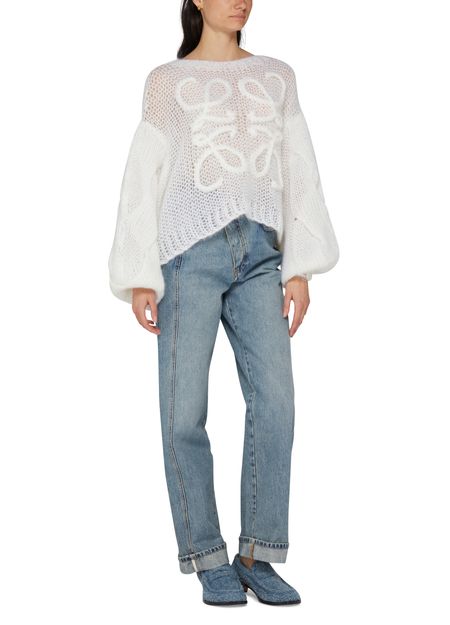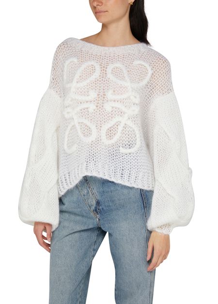 Pull en maille à la matière chaude, avec encolure ras du cou et manches montées. Sa forme ample offre un confort optimal et un style décontracté. Parfait pour les journées fraîches, ce pull Anagram de Loewe est un essentiel pour un look tendance et confortable.