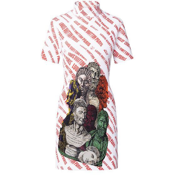 Cette robe à manches courtes et à l'allure sportive se distingue par l'un des motifs les plus marquants de la collaboration avec Fornasetti. Composée de maille jacquard compacte en viscose mélangée qui sublime la silhouette, elle est entièrement habillée de la signature graphique inclinée de la saison, associée à des motifs emblématiques de bustes grecs et romains à l'avant. Un col cheminée apporte une note...