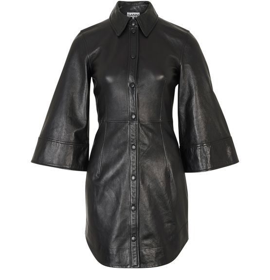Avec ses manches amples et sa bande de boutonnage qui allonge la silhouette, la robe en cuir de la marque Ganni va s'imposer aux femmes.