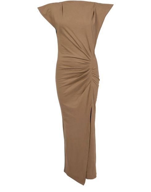 La robe longue Nadela d'Isabel Marant incarne l'élégance contemporaine. Son détail drapé sublime la silhouette, tandis que l'encolure ras du cou et les manches courtes offrent une allure raffinée. La fermeture à glissière dissimulée au dos et la surpiqûre visible ajoutent une touche d'originalité, mettant en valeur le logo appliqué.