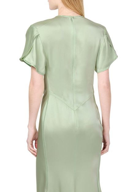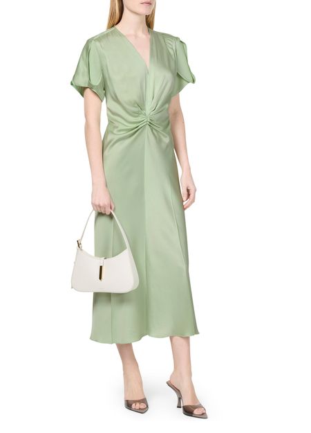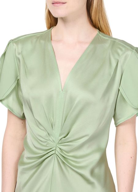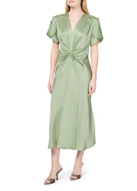 Description : fermeture à glissière au dos, détail drapé, logo appliqué, surpiqûre visible, robe midi, manches courtes, soirée et cocktails, col en v, manche évasée, froncée à la taille.