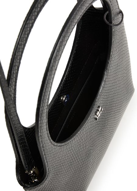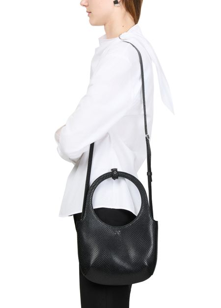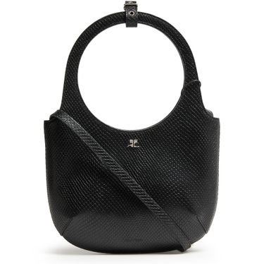 Découvrez le bucket bag Courreges, confectionné en cuir à relief crocodile pour une allure contemporaine. Sa poignée unique et son logo métallique à l'avant soulignent son caractère distinctif, tandis que les finitions argentées apportent une touche sophistiquée à ce modèle emblématique.