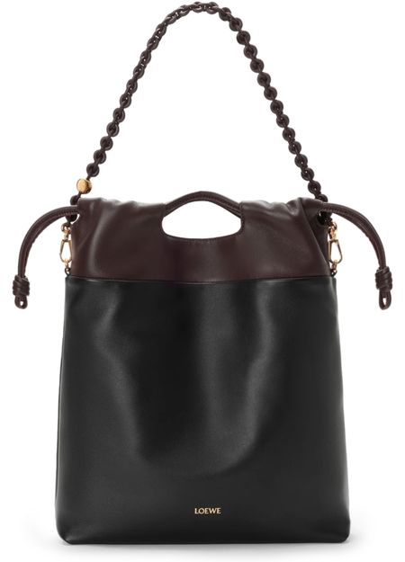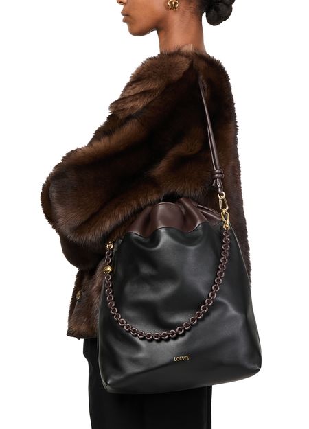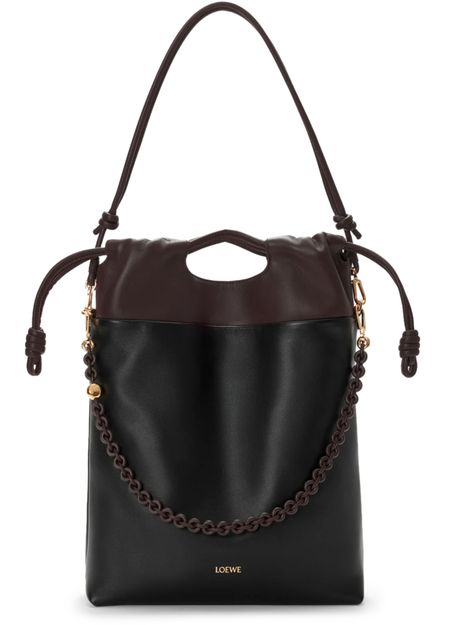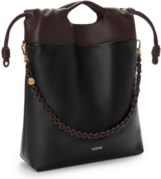 Découvrez le sac cabas Flamenco Purse de Loewe, une pièce de design moderne. Confectionné en cuir lisse, ce sac porté épaule arbore une bandoulière chaîne décorative et une fermeture par cordon coulissant. Le grand compartiment intérieur et les surpiqûres apparentes accentuent son élégance fonctionnelle, tandis que le logo à l'avant en lettres argentées ajoute une touche de sophistication.