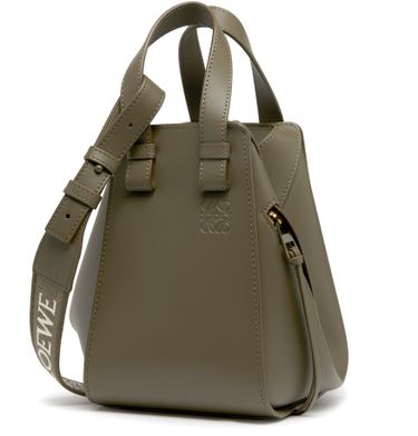 Le sac Hammock Compact monochrome de Loewe est un accessoire de luxe en cuir lisse. Ses découpes graphiques et ses poignées ajoutent une touche moderne à son design. Le motif emblématique de la marque est subtilement présent sur le sac. Une poche latérale pratique et des coutures apparentes complètent ce sac élégant, idéal pour un porté main.