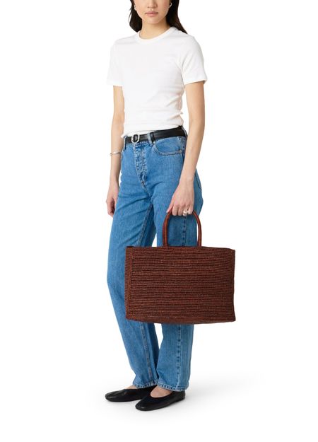Découvrez le sac moyen en raphia Charlotte Lie Studio, un sac panier en maille ajourée doté d'une poignée double. Sa structure légère et son allure raffinée en font l'accessoire idéal pour sublimer vos tenues avec une élégance contemporaine.