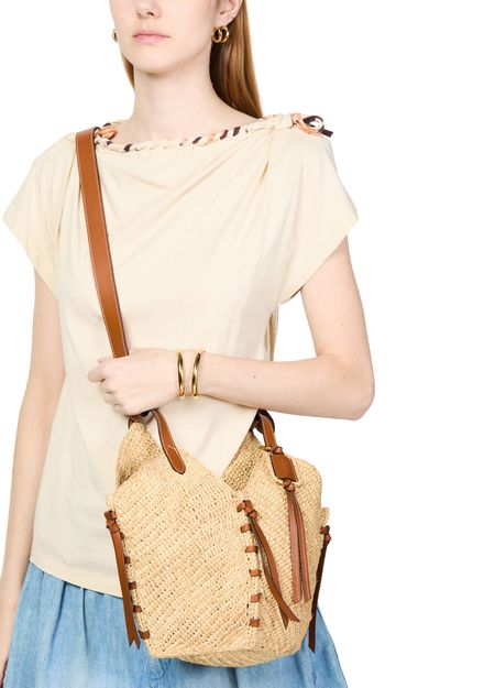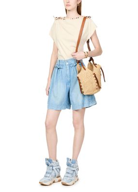 Le sac porté épaule en raphia Tampa d'Isabel Marant incarne l'élégance décontractée. Avec sa bandoulière ajustable et sa poignée unique, il se porte main ou épaule. Les coutures contrastantes et le logo appliqué à l'avant ajoutent du caractère, tandis que ses finition tressée en cuir et son compartiment unique offrent praticité et style.