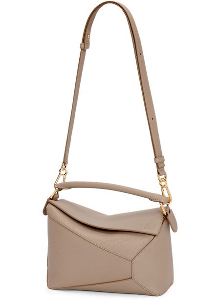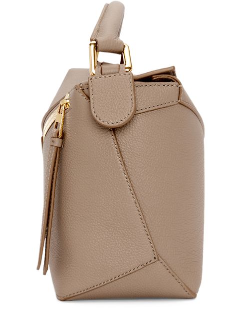 Découvrez le Puzzle Edge petit sac en cuir de veau grainé souple Loewe, confectionné en cuir grainé doux et orné de finitions dorées. Sa bandoulière fine, ajustable et amovible, ainsi que la poignée unique, offrent une allure moderne. Le médaillon Anagram et le logo à l'avant signent son style raffiné.