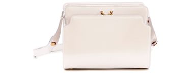 La maison italienne Marni a imaginé un sac rigide en cuir de veau qui mixe style, élégance et organisation. Quatre compartiments le composent, certains fermés par une fermeture zip d'autres par un bouton-pression, pour vous permettre de vous y retrouver en un clin d'oeil. Sa forme rectangulaire aux angles légèrement arrondis est ponctuée à l'avant des deux petites boules dorées du fermoir.
