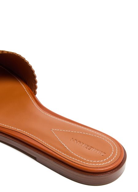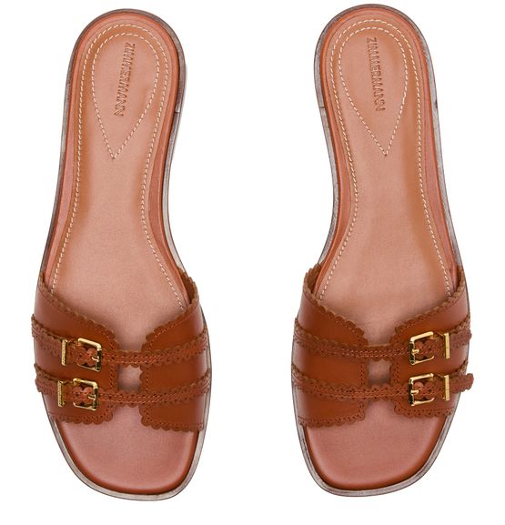 Découvrez les sandales Goldie de Zimmermann, confectionnées en cuir lisse avec un bout carré ouvert et une bride à boucles élégante. Le talon plat assure un confort optimal, tandis que les bords surpiqués et les finitions dorées apportent une note sophistiquée à ce modèle distinctif.