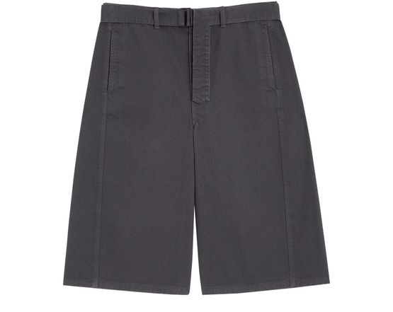 Le short effet torsadé de Lemaire se distingue par sa fermeture à glissière dissimulée et ses passants pour ceinture. Avec une coupe taille basse et des poches latérales, il allie confort et style. La poche plaquée à l'arrière ajoute une touche pratique, tandis que sa longueur genou souligne l'élégance.