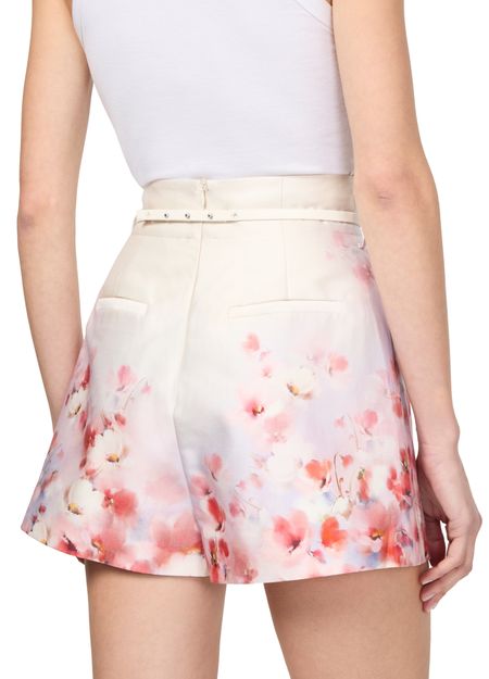 • Description : fermeture à glissière dissimulée au dos, passants pour ceinture, imprimé floral, surpiqûre visible, court, poche arrière, poches à rabat passepoilées, taille ceinturée.