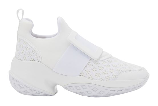 Roger Vivier a su adapter son savoir-faire artisanal iconique à la mode urbaine actuelle, comme le démontrent ces baskets Viv' Run. Cette chaussure singulière, imaginée par Gherardo Felloni, reprend les codes emblématiques de la marque : la boucle carrée et le talon virgule qui inspire la forme de la semelle. À porter avec un pantalon droit de costume et un hoodie pour briser les codes.