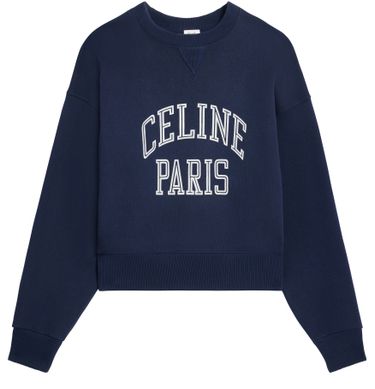 Adoptez le sweat loose en coton de Celine. Avec sa coupe décontractée et son col rond, ce modèle se distingue par un motif floqué Celine Paris et des épaulettes tombantes. Les finitions en bord-côte ajoutent une touche de sophistication à ce vêtement confortable.