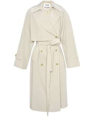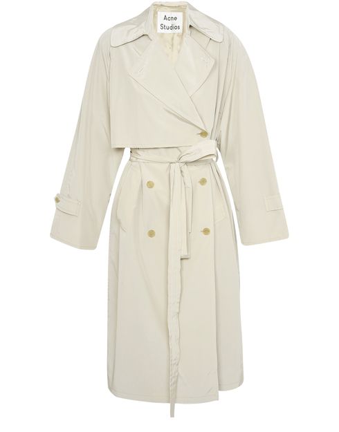Le trench Orane, pièce iconique de la maison Acne Studios, prend une nuance naturelle. Ce choix de teinte permet à ce trench féminin de s'intégrer à un look habillé.