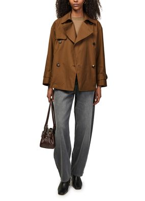 Découvrez le trench court de Max Mara, silhouette moderne avec manches trois-quarts et double boutonnage. Les poches latérales apportent une touche pratique, tandis que le col structuré et la coupe ajustée offrent une élégance raffinée. Parfait pour sublimer toutes vos tenues, du quotidien aux occasions spéciales.